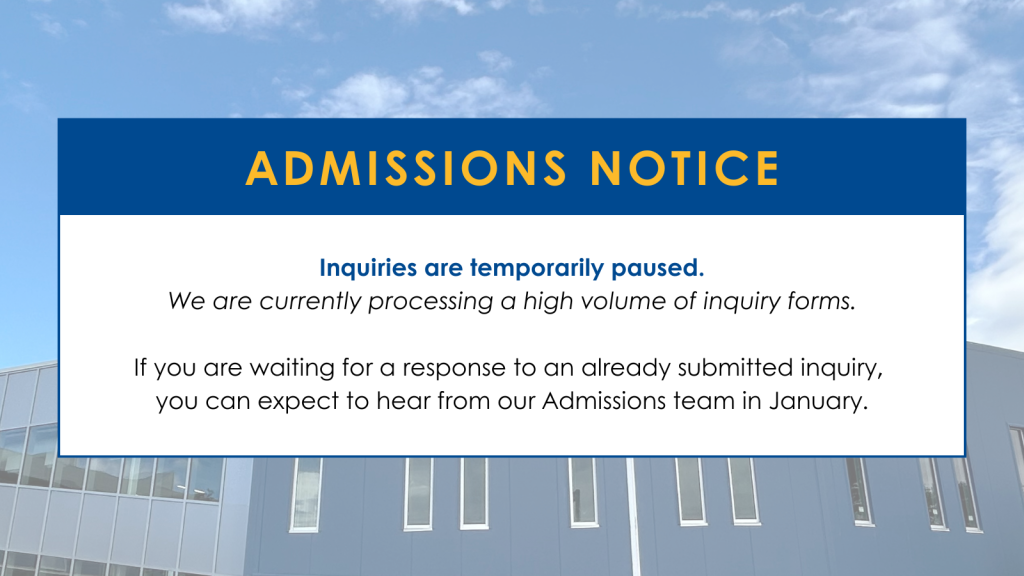 Inquiries for the 2026–2027 school year are welcome. The below admissions process begins in September 2025.